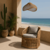Cojín firme con tapizado rústico, pensado para espacios tropicales, terrazas techadas o interiores cálidos.