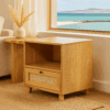 Un cajón amplio de bordes redondeados y entrepaño abierto para objetos cotidianos.