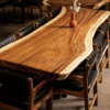 La parota es una madera tropical originaria de México y Centroamérica, conocida por su resistencia a la humedad, larga vida útil y su apariencia distintiva. En este Comedor de Parota 8 plazas, se aprovechan al máximo estas cualidades para ofrecerte un mueble no solo bello, sino también funcional y duradero.