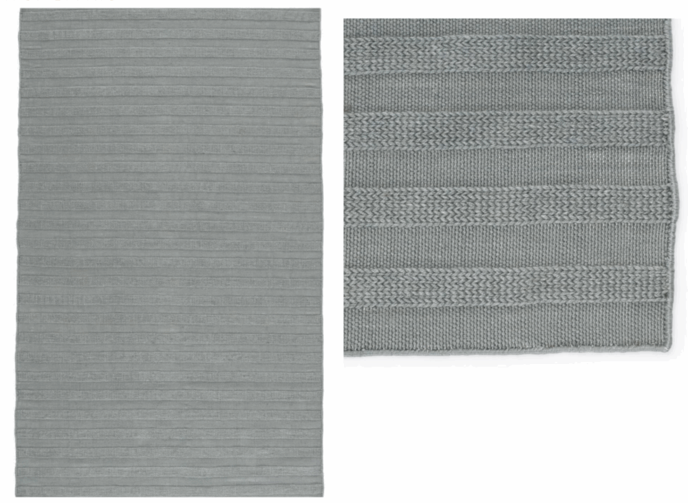 Este tapete destaca por su color gris oscuro con franjas horizontales en relieve, creando un patrón texturizado y visualmente atractivo. Es ideal para añadir un toque de elegancia sobria a cualquier habitación. Medidas: 1.22 m x 1.88 m y 2.16 m x 3.07 m